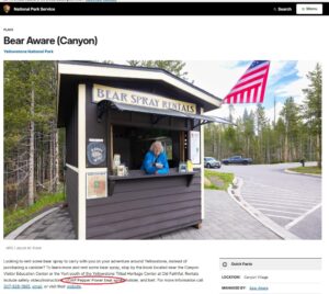 国立公園は国が安全責任を負うため、公園を管理している側が安全性や信頼性を確認したベアスプレーだけを採用している、しかし公的機関のため基本的に会社名は書かない。